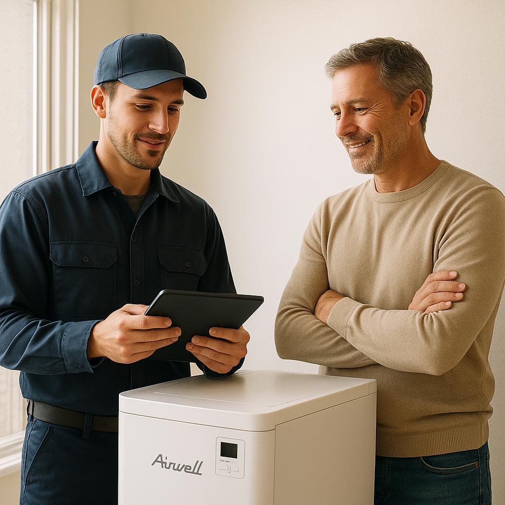 4. Recomendaciones y mantenimiento preventivo: al finalizar, el técnico te indica pautas básicas para cuidar la instalación: limpieza de filtros, revisiones periódicas, ajustes según dureza del agua en Oviedo y consejos para aprovechar las funciones avanzadas de ahorro energético de Airwell.